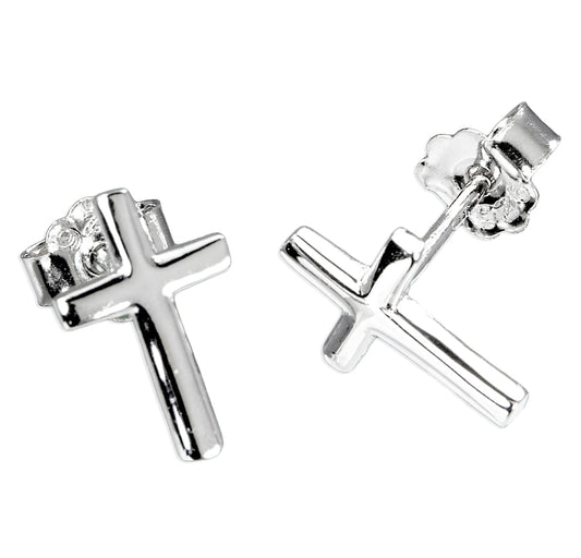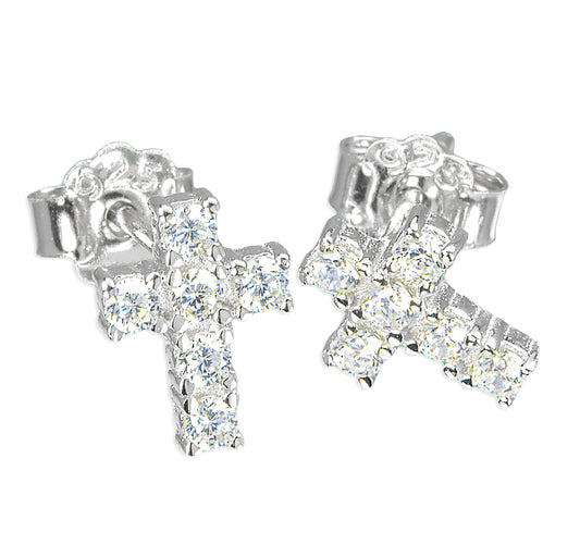 Sterling Silver Cross Earrings with Crystal Heart-Shaped CZ