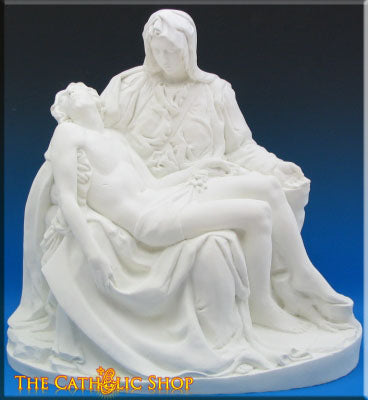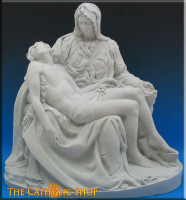 This lawn and garden Pieta, originally sculpted by Michelangelo, is appropriate for indoor and outdoor shrines. Or use as a lawn and garden statue or as a thoughtful cemetery piece. The statue is approximately twenty-two (22) inches in height.