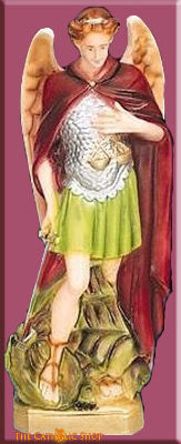 Bring home this Saint Michael the Archangel lawn and garden statue. Detailed lawn and garden statue is designed for lasting durability indoors and outdoors. Patronage of law officers, paratroopers, mariners, and EMT's. He is the protector of Heaven's gates! This statue is available in a number of color finishes and stands approximately twenty four (24) inches tall.