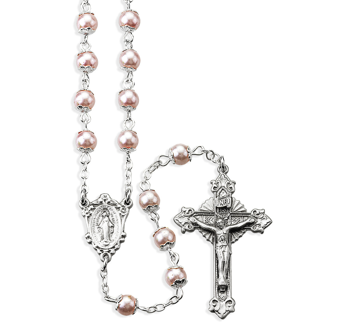 Light Pink Imitation Pearl Double Capped New England Pewter Rosary
