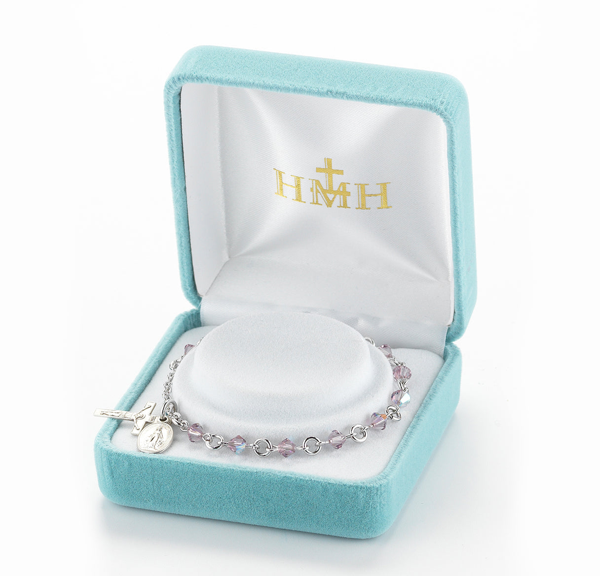 Rosary Bracelet Created with 4mm Amethyst Finest Austrian Crystal Rondelle Beads by HMH