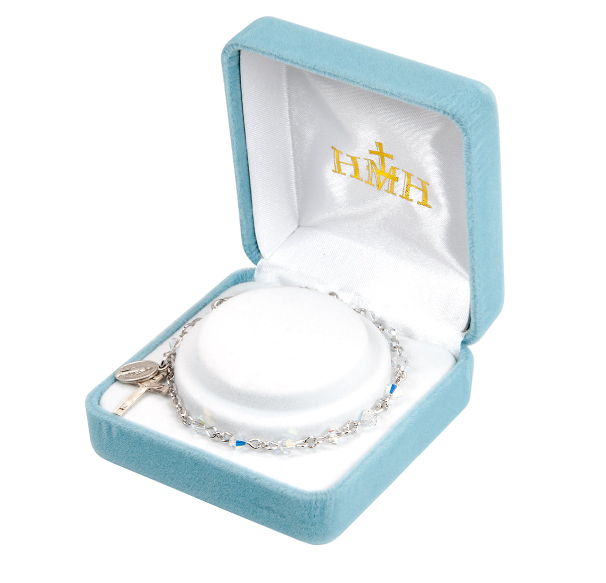 Rosary Bracelet Created with 4mm Aurora Borealis Finest Austrian Crystal Rondelle Beads by HMH