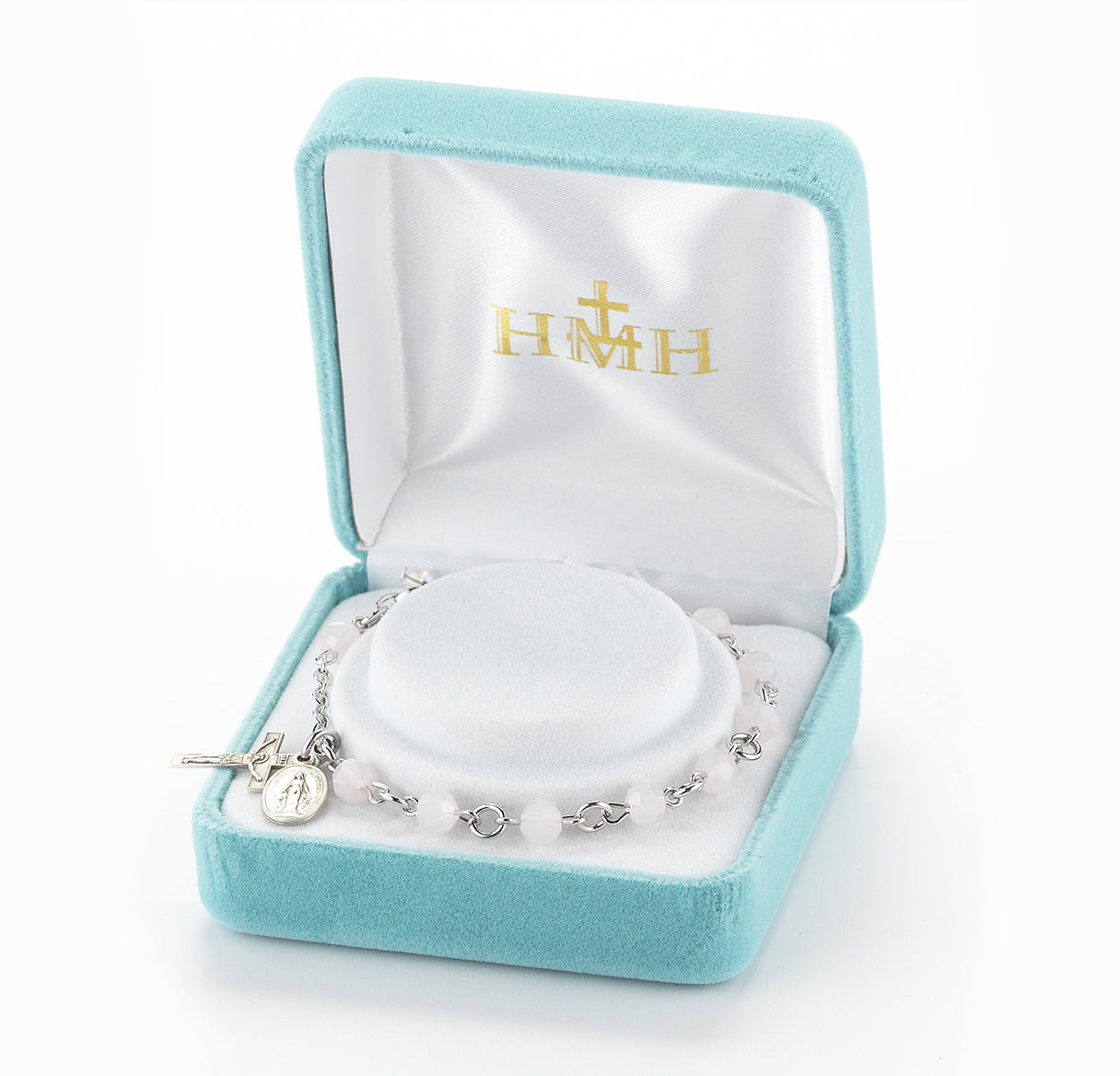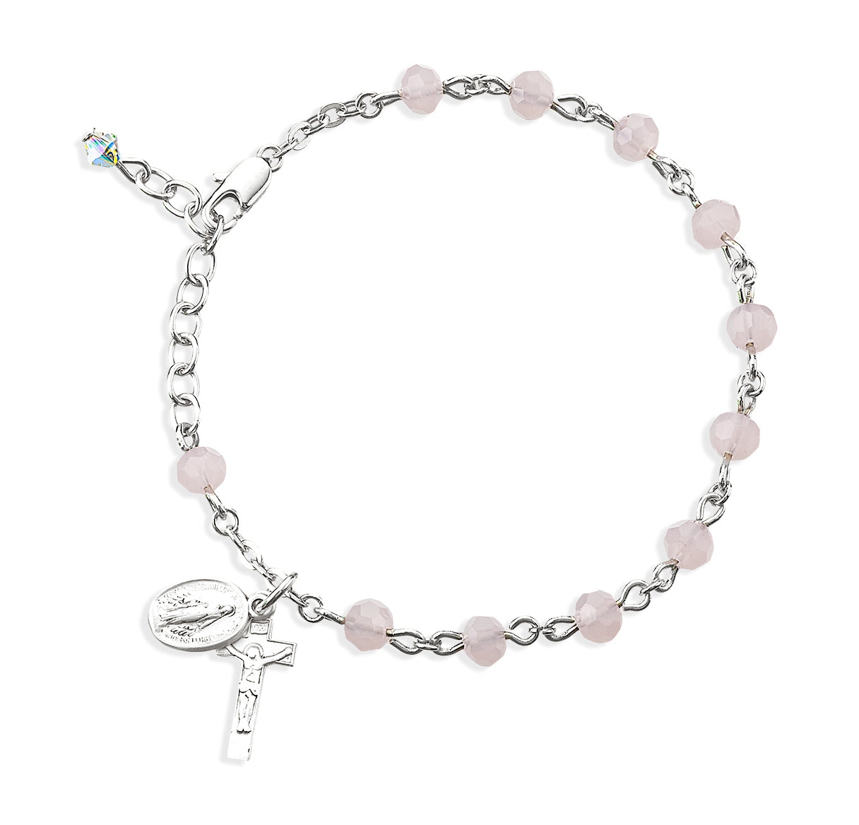 Rose Opal Round Faceted Crystal Rosary Bracelet