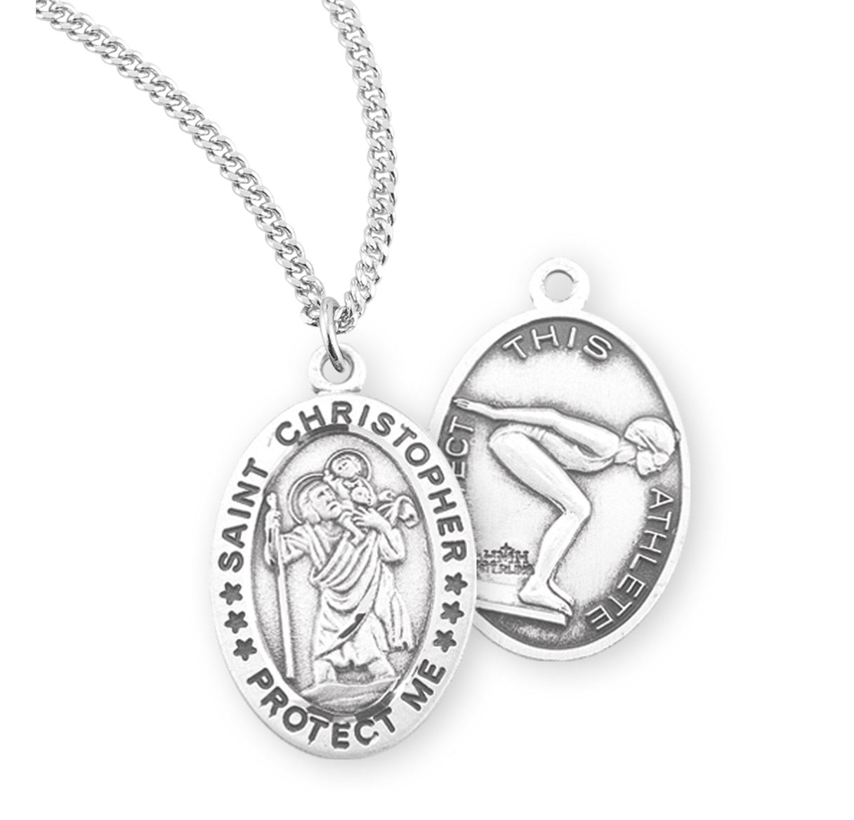 Saint Christopher Oval Sterling Silver Female Swimming Athlete Medal