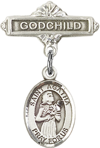 Sterling Silver Baby Badge with St. Agatha Charm and Godchild Badge Pin