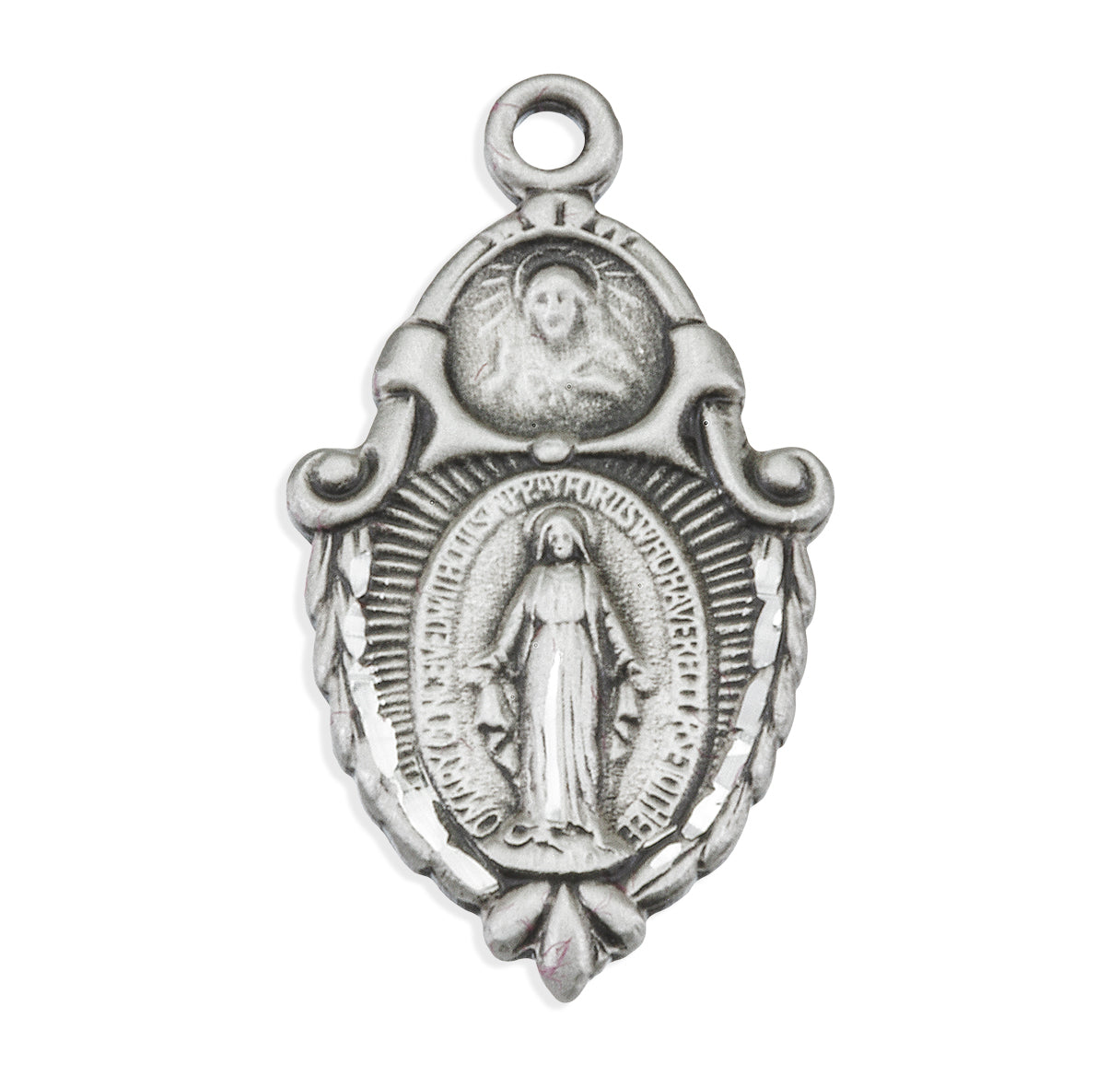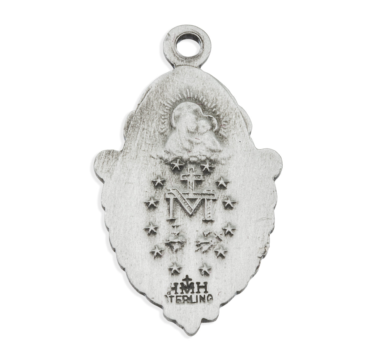 - Blessed Mother Mary with rays coming out of her extended hands, crushing a serpent under her feet.