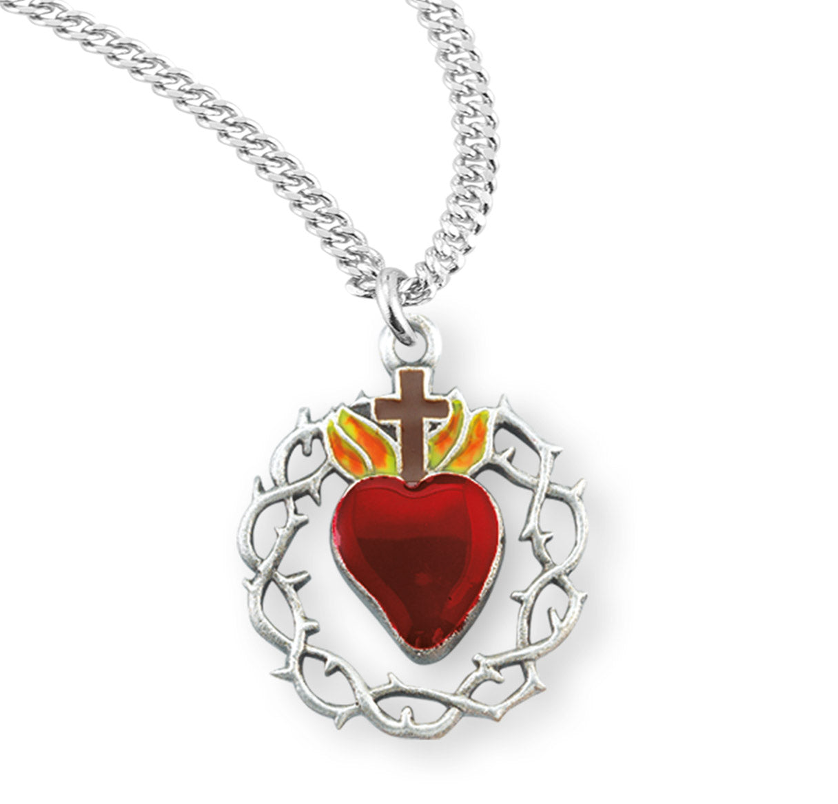 Sterling Silver Red Enameled Heart "Crown of Thorns" Medal