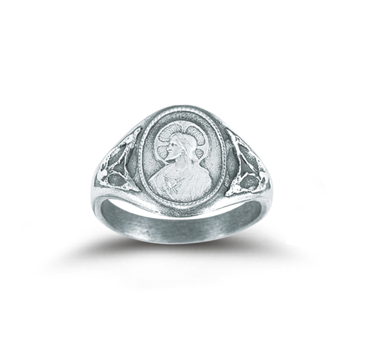 Sterling Silver Sacred Heart Scapular Ring with Our Lady of Mount Carmel Inside Size 6