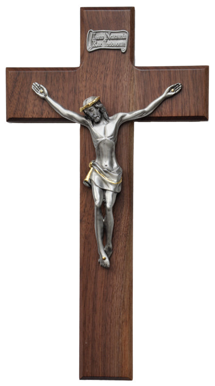 This Wall Crucifix is made of beautifully stained walnut and has a pewter corpus. This crucifix is perfect for home, school or parish. Measures 12" in height.